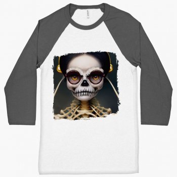 Skeleton Print Baseball T-Shirt – Halloween Themed T-Shirt – Creepy Girl Tee Shirt